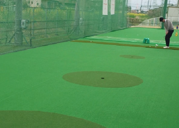 施設案内Institution Guide 施設詳細 ショートゲームエリア 2024年2月NEW!待望のバンカー設備導入! 思う存分練習してください。 バンカーへの入り口は新館フロントにあります。 上り、下り、ロングパット、ショートパットの練習ができます。 自分の練習したい距離で誰にも気を遣わず黙々と練習出来ます。 スクール棟 詳しくはこちら >> フェアウェイ部分は約400㎡の広さの中で、 アプローチやパターの実践練習ができる フェアウェイ 開放感抜群の180ヤード・87打席! キレイになった芝で気持ちよく練習していただけます。 夜間でもボールが見やすいプラズマ照明を導入。 1階打席 落ち着きのあるデザインの打席空間。 お好きな高さで練習できるティーアップ機を導入。 練習の合間や後に冷暖房完備の休憩室でホッと一息。 2階打席 落ち着きのあるデザインの打席空間。 練習の合間や後に冷暖房完備の休憩室でホッと一息。 女性がうれしいアメニティグッズ完備。 3階打席 リーズナブルな料金で練習できる3階打席。 駅側エントランス 大型駐車場側エントランス 駅側フロント 大型駐車場側フロント プロショップ